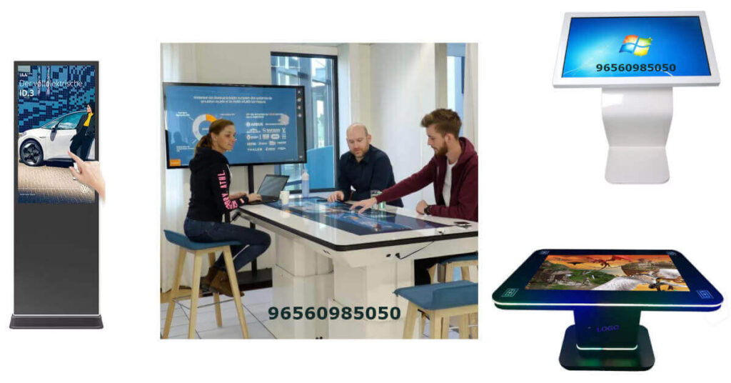 - شاشة تفاعلية 32 – 43 بوصة (اجتماعات – معارض صغيرة) سعر يومي من 20 – 50$ وسعر أسبوعي أو شهري من 100 – 200$.