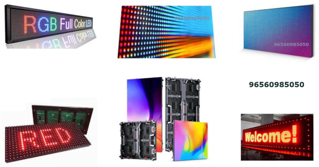 - شاشات عرض نصية RGB: تعرض المحتوى بثلاثة ألوان مثل الأحمر والأخضر والأزرق.